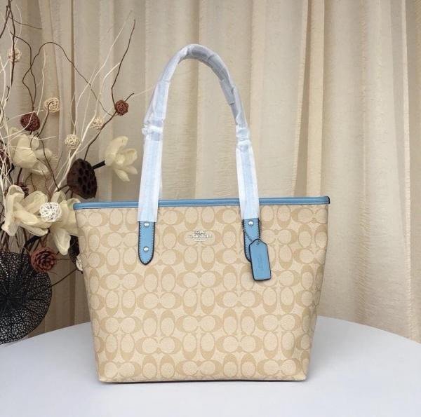 Coach Signature City Tote Bag With OG Box & Dust Bag (Beige_Blue-1118)(BSB)
