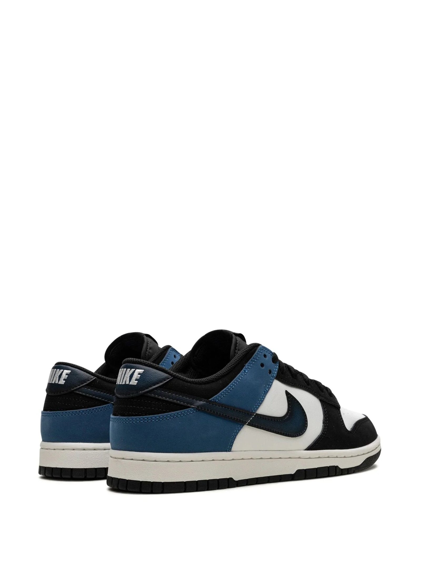 Nike Dunk Low “Industrial Blue” sneakers are a new colourway of the classic basketball shoe. The pair is crafted from white leather with black and blue panels and the iconic Swoosh logo also in blue. Underfoot, the white rubber midsole and black rubber midsole complete the look.