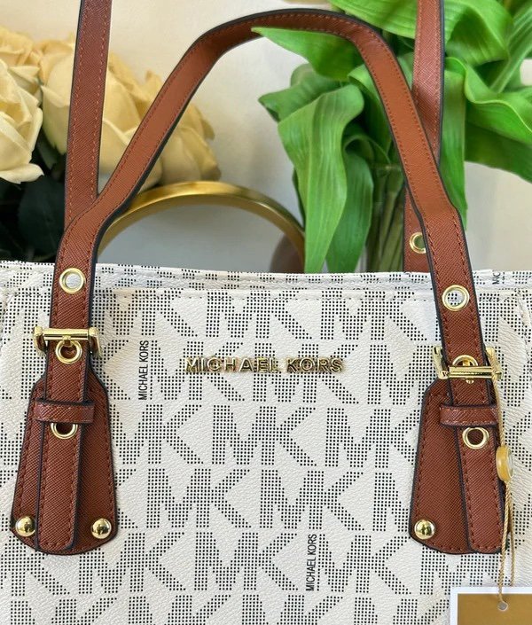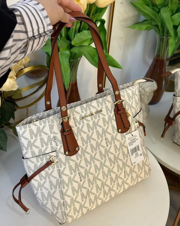Michael Kors MK Voyager Tote Bag With Side Pocket & Dust Bag (White – 972)(BSB)