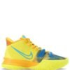 The lateral side is embellished with a raised pink and black Swoosh, and the other side is embellished with a printed blue Swoosh. Additionally, it has elastic laces and a forefoot strap. The rubber outsole and heel overlay both have a split pattern with mathematics and charts on one side and vibrant doodles on the other. With regard to performance, the sneaker has an Air Zoom Turbo unit in the forefoot and is supported by a Phylon midsole that is lightweight featuring a micro G cushioning. For additional support, the sneaker features a raised height of shafts to a medium height across on the ankle. This model features a padded tongue with a K logo printed on it, completing its appearance.